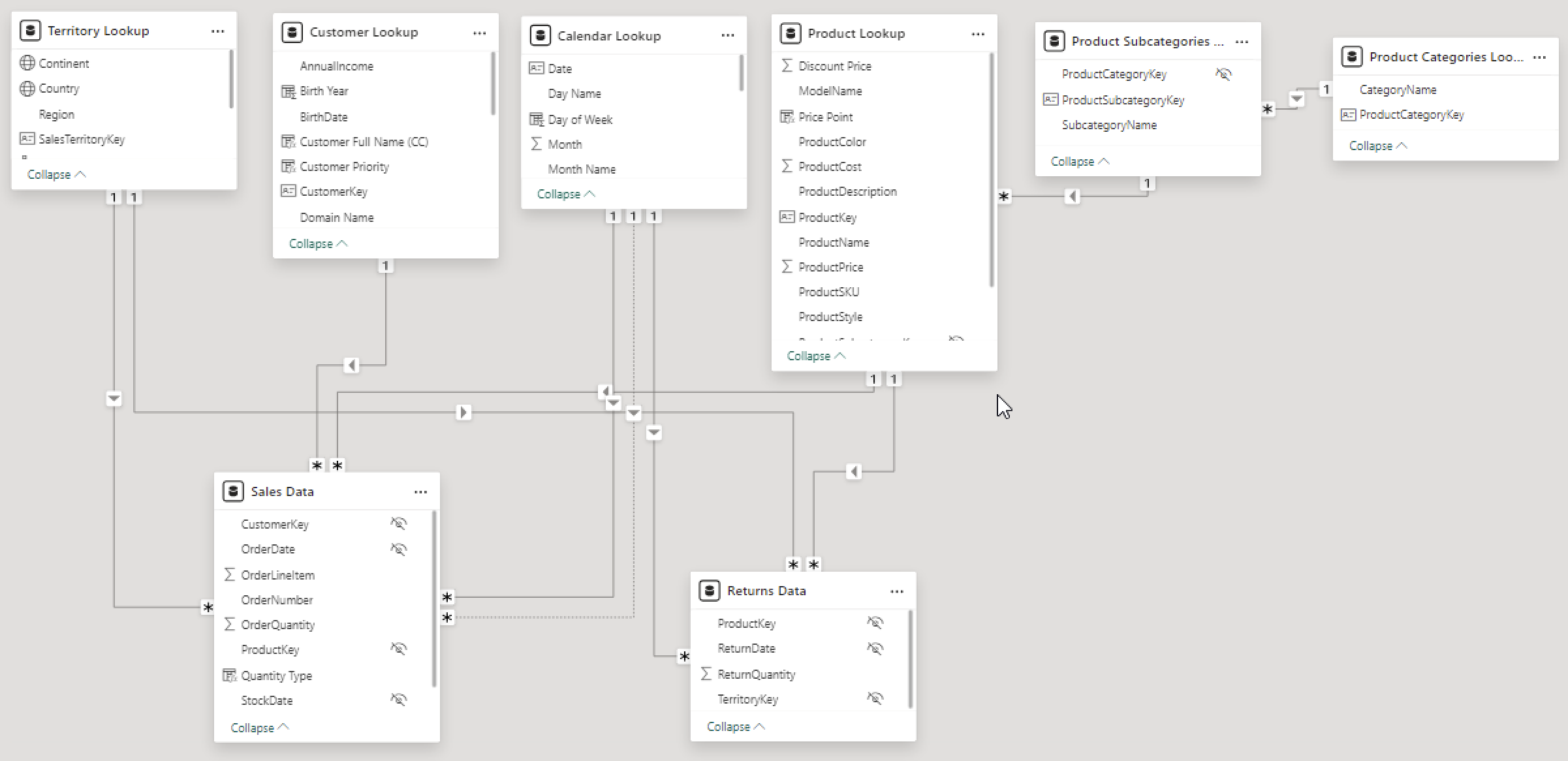 Secondly, we modeled the data to create a snowflake schema. This process involved creating relationships between the dimension and fact tables, ensuring cardinalities were one-to-many relationships.